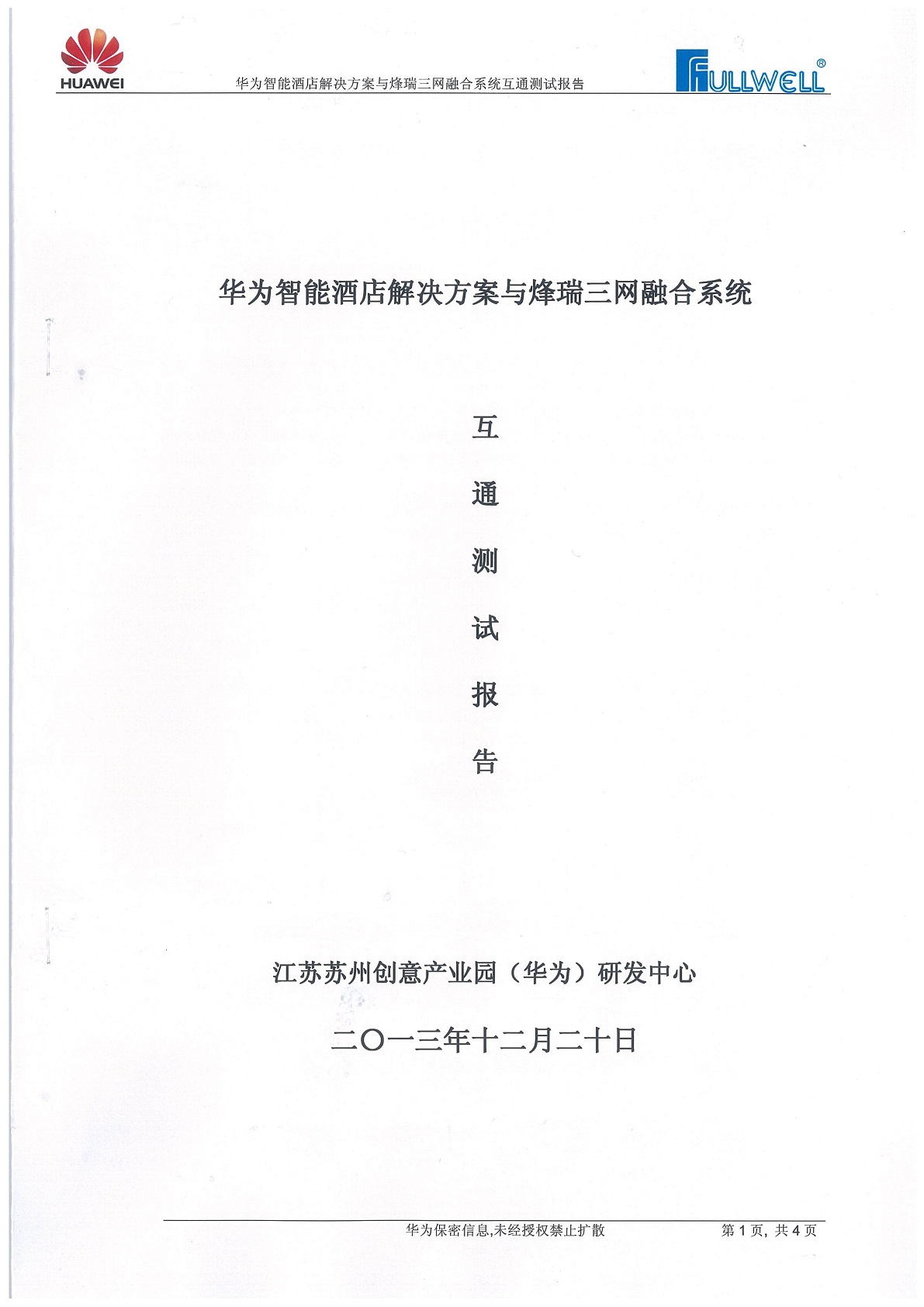 · 华为智能酒店解决方案与烽瑞三网融合系统设备,完成对接测试!
